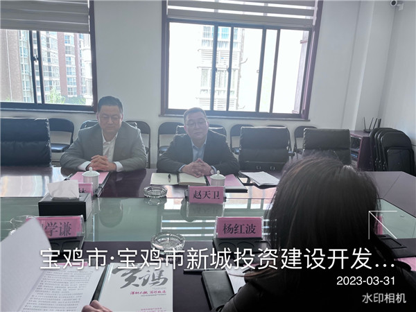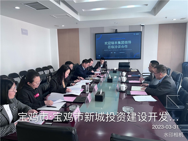 3月31日上午,宝鸡市新城投资建设开发有限公司与宝鸡瑞丰集团公司,就高新城南生态综合农贸市场建设项目战略合作洽谈会在新城开发公司会议室顺利召开。宝鸡市新城建设开发公司董事长魏学谦、总经理张东升、副总经理杨洪波及开发公司中层领导,瑞丰集团董事长张宝林、总经理赵天卫、总经理助理代益敏参加会议。会议由新城开发公司副总经理杨红波主持,新城开发公司总经理张东升介绍了新城开发公司的基本情况,瑞丰集团总经理赵天卫介绍了瑞丰集团的概况,会上播放了瑞丰集团公司的宣传片。双方在友好的气氛中,就开发建设高新城南生态智慧综合农贸市场事宜进行了沟通,取得了共识。