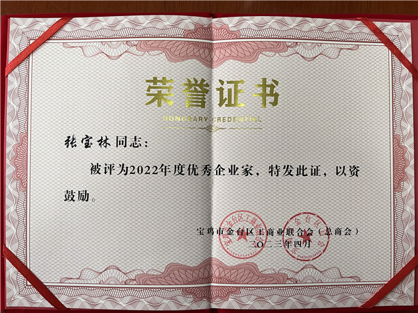 公司董事长张宝林荣获2022年度优秀企业家称号