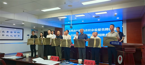 2025年8月15日下午,在市司法局7楼会议室,“宝鸡市行政执法社会监督员聘任暨行政执法监督联系点授牌”大会召开,集团董事长张宝林应邀出席。会议由市司法局党组书记、局长韩景钰主持,市政府副秘书长李金刚作重要讲话。